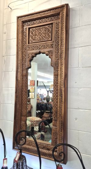 Hand Carved Arabian Arched Carved Mirror In Natural