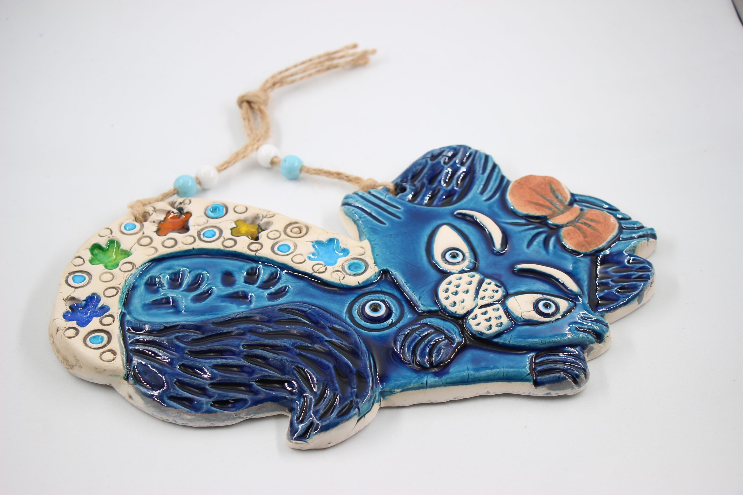 Colourful Hand Crafted Turkish Wall Ceramic Large Curled Cat