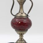 Turkish Mosaic Medium Teapot Table Lamp Cracked Red – 37cm, this is handmade using coloured cut glass with Large Elegant Base. These Turkish Teapot style lamps bring spheres of colour into your room creating a relaxing atmosphere. When the lamp is off it is an interesting piece in your room. This one is in Red – cracked glass.. As all of our lamps are handmade there may be variations. All lamps have an on/off switch. Dimensions Approx. 37 cm High x 15 cm Wide x 15 cm deep Globe size is 14 cm.